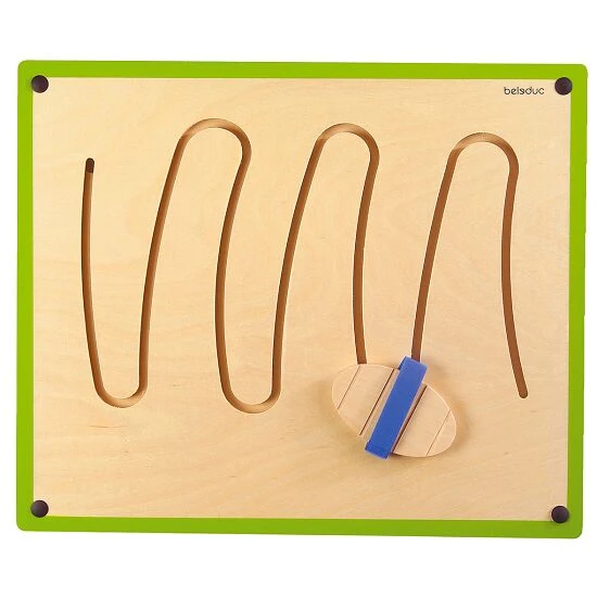 Das Wandelement von Beleduc erhalten Sie in den 3 verschiedenen Ausführungen „Schmetterling“, „Welle“ und „Berge“. Die eingefrästen Bahnen in den unterschiedlichen Wandelementen bieten jeweils ihre besonderen Herausforderungen. Wenn die Kinder den Schlitten durch die Bahnen bewegen werden Motorik und Koordination gefördert. Zudem erfordert das Spiel Konzentration.
