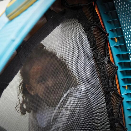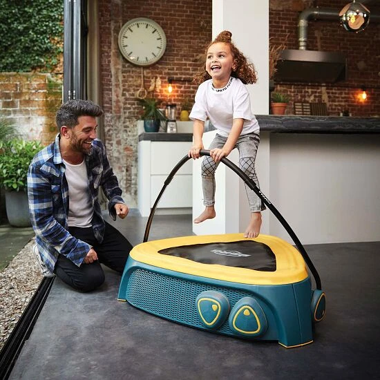Das Trampolin „Hoppaa“ aus der Berg Serie wurde speziell für Kleinkinder entwickelt. Der klappbare und gepolsterte Sicherheitsbügel gibt den Kindern Hilfestellung und unterstützt die Kinder dabei besser Springen zu lernen. Die Kids trainieren beim Trampolinspringen spielerisch Fähigkeiten wie Gleichgewicht und Motorik. Der Bügel kann ebenfalls heruntergeklappt bleiben, wenn das Kind schon ein gutes Gleichgewicht besitzt. Durch die Belüftungslöcher am Rand des Hoppaa wird den Kindern das Hochspringen zusätzlich erleichtert, weil weniger Luftwiderstand entsteht, da die Luft beim Springen schneller entweichen kann.