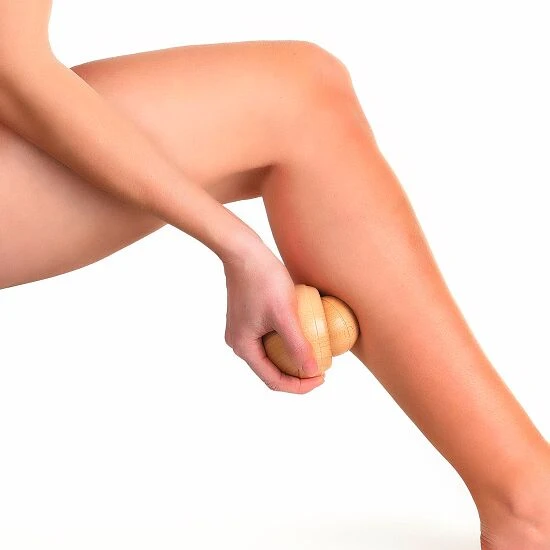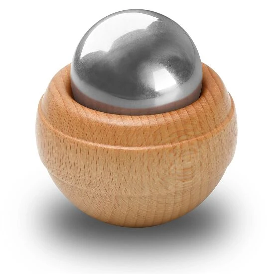 Der Massageroller „Elements“ von BodyRoller besteht aus einem Handteil aus massiver Buche und einer Kugel aus Buchenholz