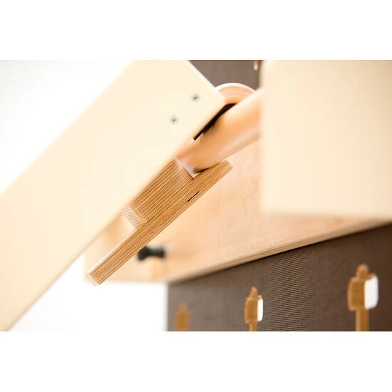 | Material | Birke MultiplexMultiplex-Platten sind Furnier-Sperrholzplatten aus mindestens 5 Furnierlagen gleicher Dicke. Die Lagen sind quer zueinander verleimt, d.h. die Richtung ihrer Maserung ist von Schicht zu Schicht um 90° gedreht. Dadurch sind die Platten extrem formstabil und halten sehr hohen Belastungen stand. Verwendung: z. B. Sprungkästen, Theken, Bühnenbau, Werkbänke, Treppenbau |
