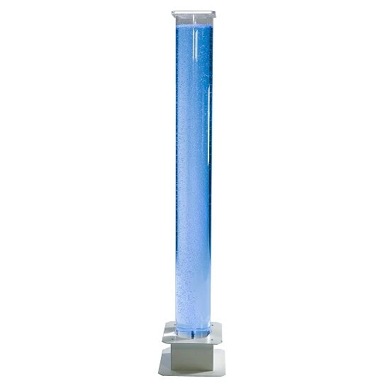 -Lampe beleuchtet. Der langsame, sanfte Farbwechsel erfolgt automatisch, ohne dass etwas geschaltet werden muss. Die komplette Technik und die Pumpe der Blasensäule sind in einem weißen Sockel untergebracht.