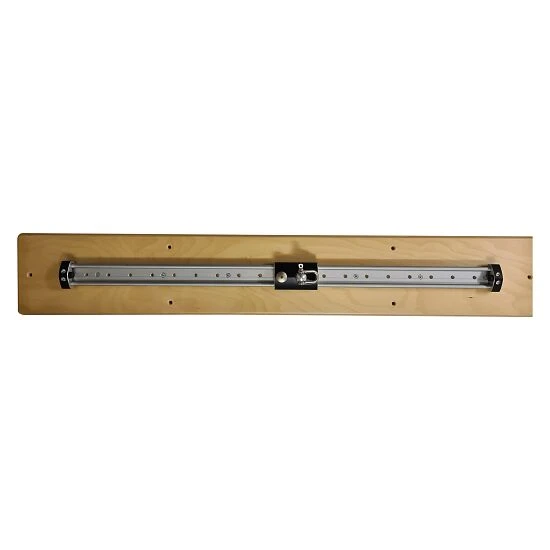 Schienenmodul für die Pfostenmontage. Komplett mit Schlitten, Endstücken, vormontiert auf Dreiecksleiste. Maße: 100×5,5 cm.