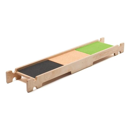 Hühnerleiter: Eingelassene blaue Kunststoffsprossen an der Oberfläche bieten taktile Stimulation und trainieren das Fußgewölbe und den Gleichgewichtssinn.