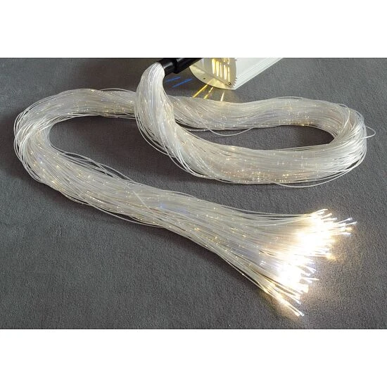 Die Faseroptik-Stränge mit Glasfasern können Sie einfach an alle gängigen Faseroptikprojektoren anschließen. Die Fasern haben einen ø von ca. 4,5 mm mit Kunststoffummantelung. Sie haben die Wahl zwischen Ausführungen in 3 unterschiedlichen Längen und 2 verschiedenen Faserlängen. Die Lieferung erfolgt ohne Lichtquelle.