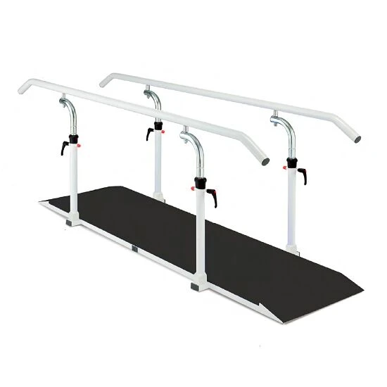 Der Gehbarren mit Plattform von Ferrox ist ein feststehender, stabiler Gehbarren mit solider Rahmenkonstruktion. Die Bodenplatte ist mit einem Anti-Rutschbelag überzogen und ermöglicht den Patienten sicheres Gehen. Dank des Einrastsystems „Easy-Click“ lassen sich die Holme einfach und komfortabel in der Höhe verstellen. Die Höhenverstellung reicht von 78-104 cm. Die Holme lassen sich weit, eng oder schräg einstellen.