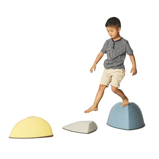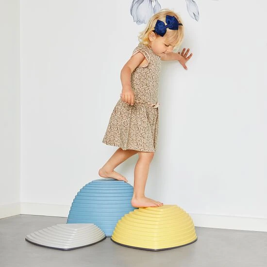 Das Balanciersteine-Set „Hügelkuppen Nordic“ von Gonge ist beliebt im Kindersport in Kitas, Kindergärten und Schulen und bei Anwendungen im Bewegungsraum. Die Kinder balancieren von einer Kuppe zur nächsten. Variationen sind möglich, die die Herausforderung steigern. Etwa, wenn die Balancierenden versuchen, besonders langsam zur nächsten Kuppe zu gelangen. Die Balancekuppen lassen sich schnell in eine Bewegungslandschaft oder einen Spielparcours integrieren.