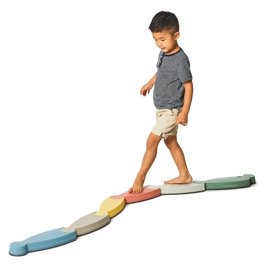 Eine kunterbunte und spaßige Herausforderung für Koordination und Gleichgewicht – die Gonge Balancierstrecke „Fluss“!