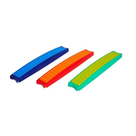 Die Balancierstrecke Build’n’Balance „Taktiles Balancieren“ von Gonge besteht aus 3 kleinen und 3 großen Pylonen und 6 taktilen Kunststoff-Balken jeweils aus Kunststoff. Die taktile Oberfläche der Balken ist aus Kautschukgummi gefertigt. Durch die Kombination von kleinen und großen Pylonen bieten sich Ihnen viele Möglichkeiten: Geraden, Steigungen und Gefälle sind möglich. Die strukturierten Oberflächen der Balancier-Balken sind eine angenehme Erfahrung und Stimulation für den taktilen Sinn in den Füßen.