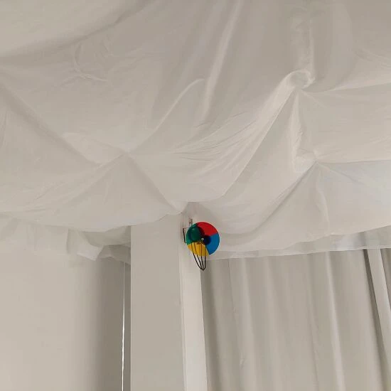 Der Himmel für SnoezelenTherapie-Konzept bei dem in einem besonders ansprechend gestalteten Raum über Licht-, Klang- und Tonelemente, Aromen und Musik entspannende und aktivierende Sinnesempfindungen ausgelöst werden sollen. Das Wort Snoezelen setzt sich aus den niederländischen Begriffen „snuffelen“ (schnüffeln, schnuppern) und „doezelen“ (dösen, schlummern) zusammen.-Räume besteht aus schwer entflammbarem TSC-Taft-Material (100 % PolyesterPolyester ist eine sehr pflegeleichte Kunstfaser. Schnell trocknend und besonders reißfest.) entsprechend den Brandschutzvorschriften. Speziell angefertigt für die Anwendung in SnoezelenTherapie-Konzept bei dem in einem besonders ansprechend gestalteten Raum über Licht-, Klang- und Tonelemente, Aromen und Musik entspannende und aktivierende Sinnesempfindungen ausgelöst werden sollen. Das Wort Snoezelen setzt sich aus den niederländischen Begriffen „snuffelen“ (schnüffeln, schnuppern) und „doezelen“ (dösen, schlummern) zusammen.-Bereichen und Räumen, wo durch die Brandschutz-Auflagen keine anderen Materialien verwendet werden dürfen. Der Himmel für SnoezelenTherapie-Konzept bei dem in einem besonders ansprechend gestalteten Raum über Licht-, Klang- und Tonelemente, Aromen und Musik entspannende und aktivierende Sinnesempfindungen ausgelöst werden sollen. Das Wort Snoezelen setzt sich aus den niederländischen Begriffen „snuffelen“ (schnüffeln, schnuppern) und „doezelen“ (dösen, schlummern) zusammen.-Räume kommt mit dem Sport-Thieme Lichterhimmel zum Einsatz, den Sie separat mit bestellen können.