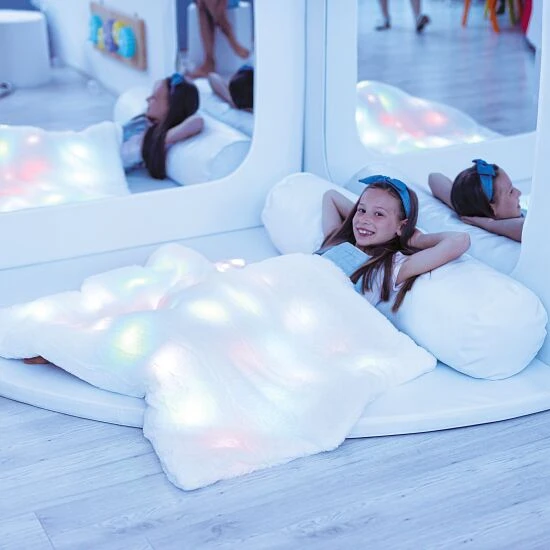 Die magische Lichterdecke bietet Menschen mit Einschränkungen visuelle Stimulation – etwa Menschen mit Einschränkungen des Hörvermögens. Die Decke kann Menschen mit Autismus oder mit Störungen der sensorischen Verarbeitung helfen, sich zu beruhigen. Aber auch im SnoezelenTherapie-Konzept bei dem in einem besonders ansprechend gestalteten Raum über Licht-, Klang- und Tonelemente, Aromen und Musik entspannende und aktivierende Sinnesempfindungen ausgelöst werden sollen. Das Wort Snoezelen setzt sich aus den niederländischen Begriffen „snuffelen“ (schnüffeln, schnuppern) und „doezelen“ (dösen, schlummern) zusammen.-Raum leistet die Lichterdecke mit ihrem Farbwechsel wertvolle Dienste. Ebenfalls in der Schule – etwa in der Lese-Ecke – sorgt die Lichterdecke für eine angenehme, entspannte Atmosphäre.