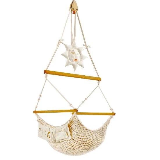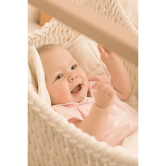 Der Babyschwinger ist die kleinste Version des beliebten Traumschwinger-Hängestuhls – In ihm liegen Kinder bereits ab dem ersten Tag sicher. Er eignet sich hervorragend sowohl für den Einsatz in Kinder-Betreuungseinrichtungen, als auch für den privaten Einsatz und kann auch für Kleinkinder mit Behinderungen genutzt werden. Das anschmiegsame Hängenetz des Babyschwingers passt sich perfekt an den kleinen Körper an, bewirkt eine ergonomische Körperhaltung und gibt dem Baby das sichere Gefühl von Gehaltenwerden und Geborgenheit. Durch die Ein-Punkt-Aufhängung werden sanfte Pendel-, Kreis- und Spiralbewegungen des Traumschwingers möglich. Dieses schwerelose Schweben beruhigt selbst Schreibabys und lässt sie entspannt in den Schlaf gleiten. Durch die einfache Neigungsverstellung kann der Babyschwinger in Liege- und Sitzposition genutzt werden, die stufenlose Höhenverstellung passt sich jedem Raum an. Natürlich beinhaltet das hochwertige Markenprodukt nur das Beste für die Kleinen. So bestehen die Stäbe aus PEFCPEFC (Programme for the Endorsement of Forest Certification Schemes) ist ein transparentes und unabhängiges System zur Sicherstellung einer nachhaltigen Waldbewirtschaftung und damit ein weltweiter „Wald-TÜV“.-zertifiziertem, naturbelassenem Holz und für das knotenlose Netz wird sorgfältig ausgesuchte, schadstofffreie BaumwolleBaumwolle ist eine hautfreundliche Naturfaser. Vorteile: strapazierfähig und leicht zu pflegen. aus kontrolliert biologischem Anbau verwendet. Durch dieses natürliche Material wird das Allergierisiko gemindert.
