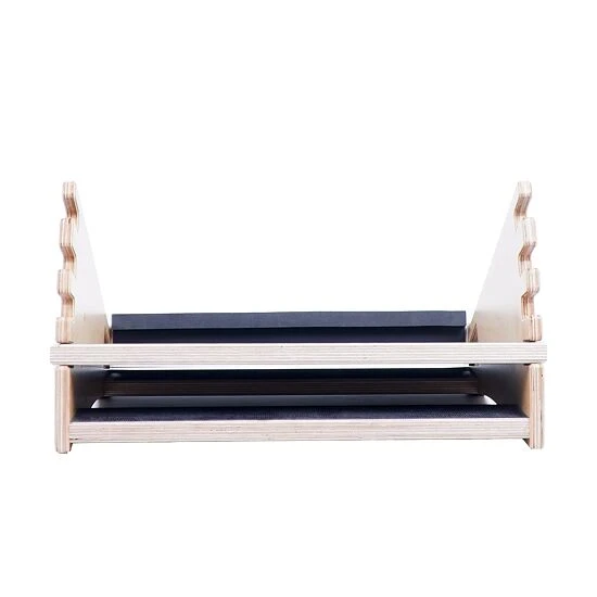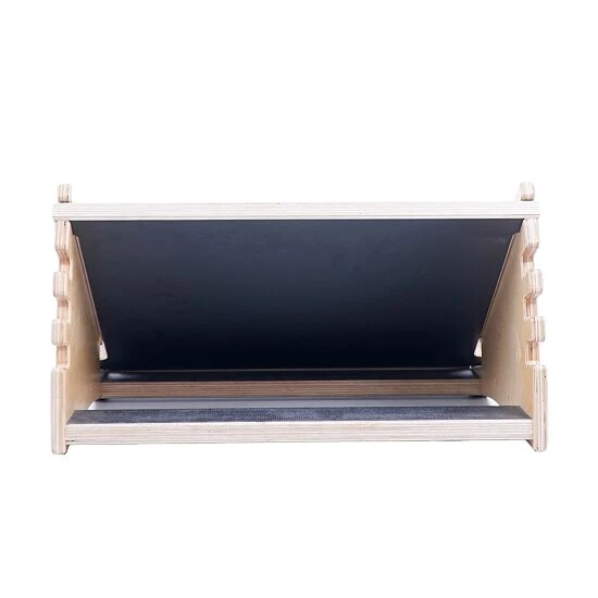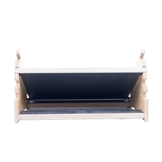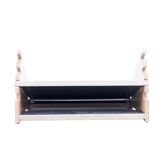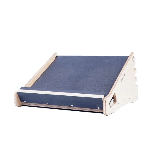 Der Pedalo Beintrainer „Kniefit“ ist aus Holz gefertigt, in Deutschland entwickelt und produziert. Der Beintrainer verfügt über eine aufgeraute Anti-Rutschbeschichtung, welche besonders bei hohen Fußbelastungen optimalen Halt bietet. Der Softanschlag sorgt darüber hinaus für hohen Komfort für Fersen und Zehen. Je nach Trainingsstand ist die Platte 4-fach in ihren Winkelgraden einstellbar. Dabei ist der gewünschte Winkel dank Einhand-Steckmechanismus schnell eingestellt – und das ohne Schrauben und Werkzeug.