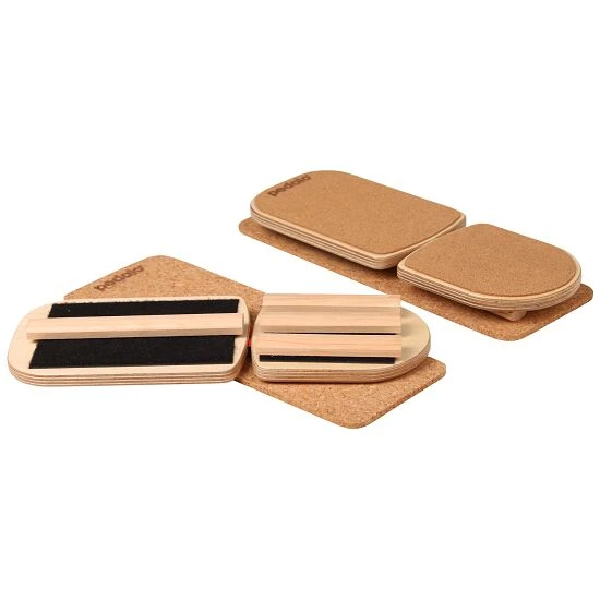 Der Pedalo Fußtrainer ist ein wichtiges Trainingsgerät zur Erhaltung eines gesunden Fußes und um Fußdeformationen entgegenzuwirken. Der Fußtrainer besteht aus 2 Standbrettern und zwar einer Vorderfuß- und einer Fersenplatte. Auf der Unterseite ist jeweils eine Klettfläche aufgebracht, auf der Sie die Kippleisten einfach mittels Klettverschluss befestigen. Die Fixierung der Kippleisten erfolgt für Vor- und Rückfuß getrennt. Das bietet Ihnen einen besonderen Vorteil: Die beiden Standbretter sind beweglich miteinander verbunden und können sich unabhängig voneinander bewegen.