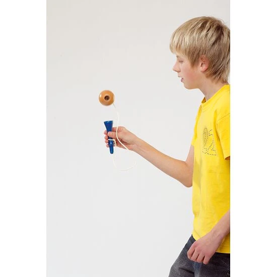 - Halten Sie den Fänger mit der Spitze oder dem Auffänger nach oben. Die Kugel muss senkrecht an der Schnur hängen und darf nicht pendeln.