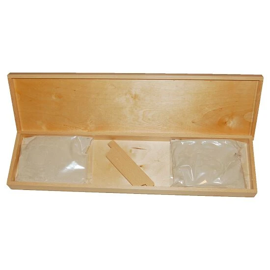 Komplett mit Rakel zum Ebenziehen und 1 kg weißer Quarzsand. Der Deckel kann als Rahmen für 16 Einlegebrettchen genutzt werden.