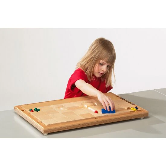 Beim Pertra-Koffer „Konstruktion“ werden die Wahrnehmung der räumlichen Beziehungen und Raum-Lage gefördert. Beim Nachfahren der Straße wird die Augen-Hand-Koordination geübt.