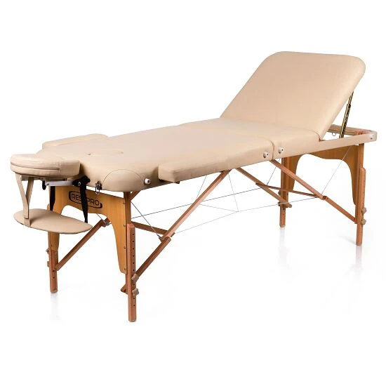 Das Gestell aus Holz ist zusätzlich mit Metallstreben versehen. Die Beine haben Anti-Rutsch-Füße. Dadurch steht der Massagetisch besonders stabil und schwingt während der Massage nicht. Eine stabile Kopfstütze aus AluminiumAluminium ist ein korrosionsbeständiges und pflegeleichtes Leichtmetall, welches für den vielfältigen Einsatz im Innen- und Außenbereich geeignet ist. Aufgrund der hohen Elastizität und des nur geringen Gewichts, ist es eines der am häufigsten verwendeten Gebrauchsmaterialien. und zusätzliche Armauflagen vervollkommnen die Ausstattung.