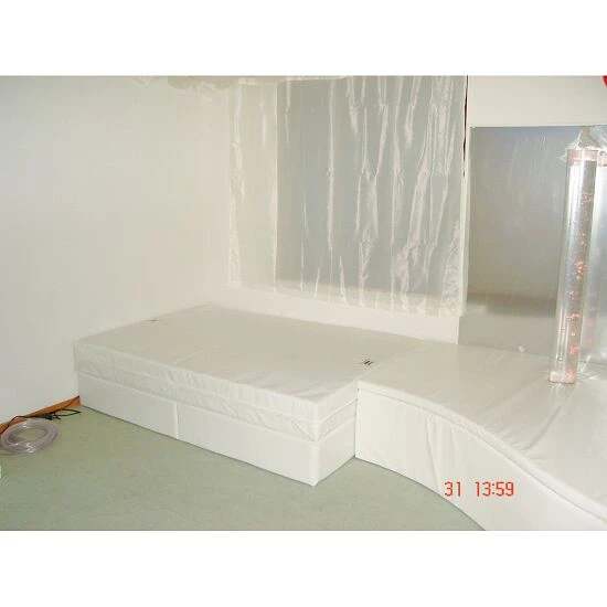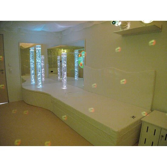 Das Rompa-Musikwasserbett ist ein hervorragendes Element für jeden Snoezelenraum, denn es bietet taktile und auditive Stimulation. Schaffen Sie einen Bereich zum Entspannen – etwa in der Nähe von Blasensäulen, Podesten oder Liegematten in Ihrem weißen Raum. Legen Sie sich auf das Wasserbett und spüren Sie, wie die Schwingungen der Musik auf Ihren Körper wirken.