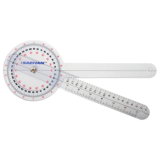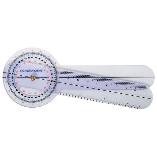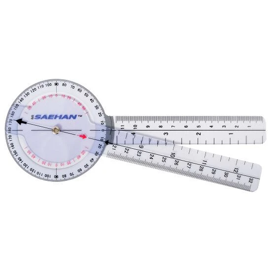 Der Saehan Goniometer „360-D1“ ist ein professionelles Winkelmesswerkzeug, mit dem Ärzte, Therapeuten und Sportwissenschaftler die Gelenkbeweglichkeit ihrer Patienten und Sportler messen können. Auch die Stellung von Schädelknochen können Mediziner so bestimmen. Zwischen den 2 beweglichen Armen ist ein Gradmesser aufgedruckt, welcher durch eine Einteilung in 1-Grad-Schritten besonders genau ablesbar ist.