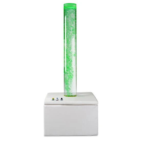 Die Sport-Thieme Snoezele Blasensäule „Interaktiv“ ist mit einer speziellen Kontrollbox ausgestattet. Die Bedienung ist denkbar einfach gehalten: per Knopfdruck stellen Sie Farben und Größe der Luftblasen ein. Die Elektronik ist sicher im Fuß der Blasensäule untergebracht. Die Box kann in alle gepolsterte Plattformen von Sport-Thieme integriert werden. Die Elektronik wird im Netzstrombetrieb betrieben, transformiert auf 12 V Sicherheits-Niederspannung. Eine Plattform für die Säule gehört nicht mit zum Lieferumfang.