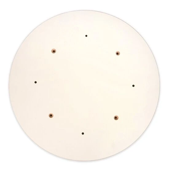 Mit eingelassenen Gewinden, passend zur Grundplatte und Drehscheibe. Rot lackierte Schichtholzplatte, ø 60 cm.