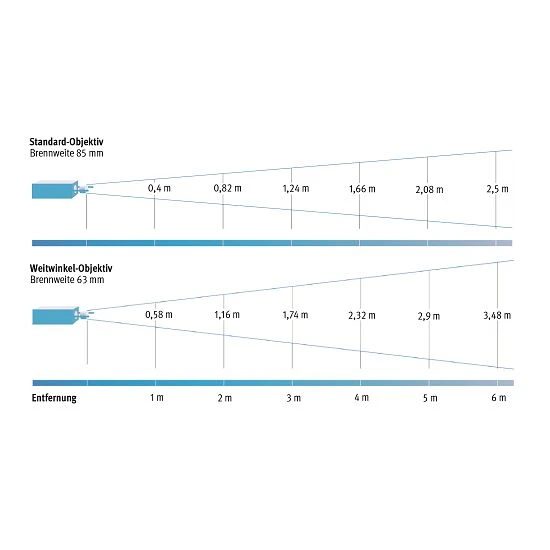 - 85 mm Standardobjektiv bzw. 63 mm Weitwinkelobjektiv