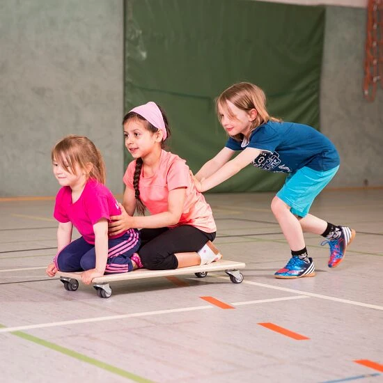 Auf dem Sport-Thieme Rollbrett „Jumbo“ können Kinder im Sitzen, Knien oder Liegen fahren. Auf dem großen Gleitrollbrett erleben die Kids spannende Abenteuer, etwa bei einer „Kanu-“ oder „Kajakfahrt“ mit dem Rollbrettpaddel. Die kleinen Bootsfahrer müssen sich gut miteinander abstimmen, um in die richtige Richtung zu fahren. Daneben fördert das Rollbrettfahren Geschicklichkeit, Gleichgewichtssinn und Motorik.