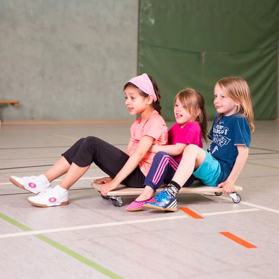 Das Sport-Thieme Rollbrett Jumbo lädt zu fantasievollen Spielen und Fahrten zu zweit ein. Gegenseitige Abstimmung mit dem Spielpartner ist unerlässlich, um vorwärts zu kommen.
