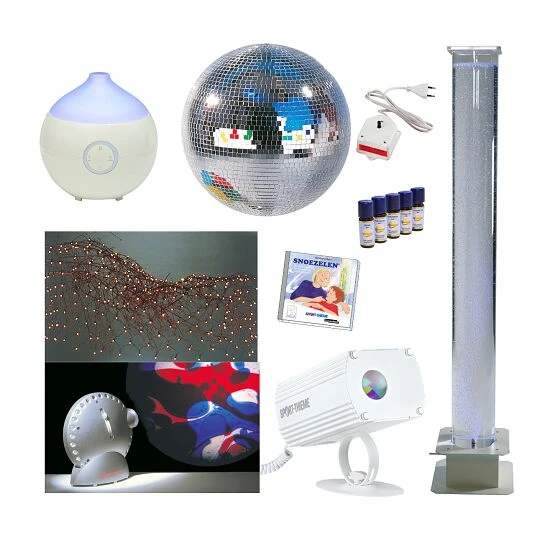 Das SnoezelenTherapie-Konzept bei dem in einem besonders ansprechend gestalteten Raum über Licht-, Klang- und Tonelemente, Aromen und Musik entspannende und aktivierende Sinnesempfindungen ausgelöst werden sollen. Das Wort Snoezelen setzt sich aus den niederländischen Begriffen „snuffelen“ (schnüffeln, schnuppern) und „doezelen“ (dösen, schlummern) zusammen. Familien-Set: Viele Eltern und Angehörige möchten nun auch kleinere Entspannungsbereiche zu Hause einrichten. Speziell für den Einsatz im privaten Bereich hat Sport-Thieme ein Set mit Produkten zusammengestellt, die für diesen Zweck eingesetzt werden können. Die Verbreitung von SnoezelenTherapie-Konzept bei dem in einem besonders ansprechend gestalteten Raum über Licht-, Klang- und Tonelemente, Aromen und Musik entspannende und aktivierende Sinnesempfindungen ausgelöst werden sollen. Das Wort Snoezelen setzt sich aus den niederländischen Begriffen „snuffelen“ (schnüffeln, schnuppern) und „doezelen“ (dösen, schlummern) zusammen. in Einrichtungen und Institutionen der Behindertenhilfe, im Bereich der Frühförderung, in Kindergärten bis hin zu Senioren- und Pflegeheimen schreitet immer weiter fort. Professionell