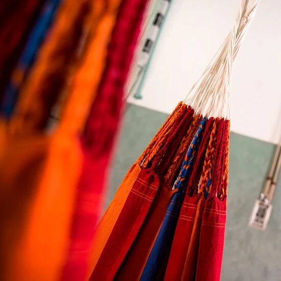 Die Hängematte von Sport-Thieme gibt Kindern das Gefühl von Geborgenheit und Gehaltenwerden. Die Matte nimmt den Körper der Kids vollkommen auf. Aber auch Jugendlichen vermittelt sie Sicherheit. Die Matte ist in einem Stück gewebt – die Gewichtsbelastung wird optimal verteilt.