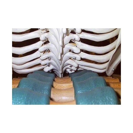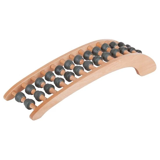 Dieses innovative Gerät unterstützt Sie dabei, Ihren Rücken fit und gesund zu halten. Tägliches Training für 10 bis 15 Minuten bildet einen entspannenden Ausgleich zu den alltäglichen Rücken-Belastungen in Beruf und Freizeit. Der Wirbelsäulenstrecker besteht aus zwei gebogenen Seitenwangen und 10 bzw. 14 Querstreben mit je einem weichen Paar Gummirollenpaar. Die zwei erhältlichen Größen zielen dabei auf verschiedene Muskelpartien ab. So ist der kürzere Wirbelsäulenstrecker Therapie ideal zum Dehnen des Lenden- und Kreuzbereichs oder von Brust- und Halsbereich. Beim Liegen auf dem längeren Wirbelsäulenstrecker Sport ist die komplette Wirbelsäule mittig zwischen den drehbaren Rollen eingebettet – sie liegt in einer natürlichen, entspannten Position, die Rückenmuskulatur wird aufgelockert und gedehnt. Dank des größeren Wölbungswinkels wird schon beim einfachen Liegen auf dem Rückenstrecker nur durch Körpergewicht und Schwerkraft der Abstand zwischen den Wirbeln vergrößert und der Druck auf die Bandscheiben vermindert. Dabei lockern die Massagerollenzusätzlich die langen Rückenmuskeln rechts und links der Wirbelsäule und sorgen für Entspannung. In Kombination mit Bauchmuskelübungen wird das Training noch effektiver.