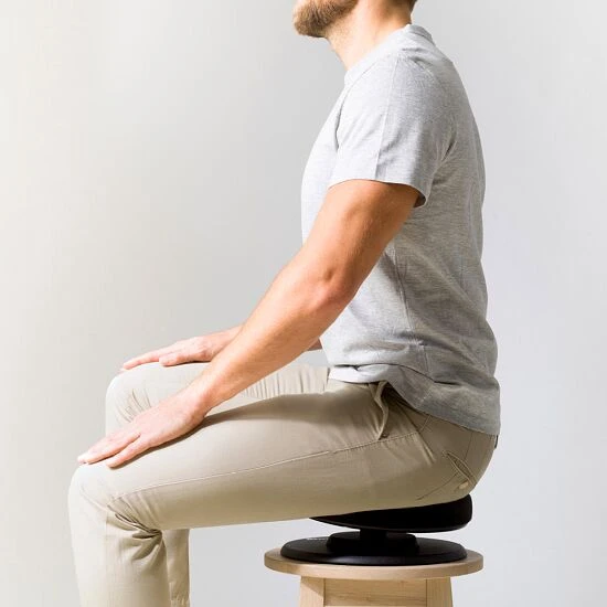 Platzieren Sie den ergonomischen Balance-Sitz von Swedish Posture auf einem Stuhl, Hocker, Bürostuhl oder Ähnlichem. Die Ausgangslage beträgt dabei 90 Grad. Stellen Sie die Höhe wenn möglich so ein, dass der Winkel in der Hüfte größer als 90 Grad ist. Nun stellen Sie beide Füße auf den Boden, setzen sich aufrecht hin, ohne sich gegen die Rückenlehne zu lehnen. Durch das Ausbalancieren des instabilen Sitzes aktivieren Sie sofort die Muskulatur. Weisen Sie am besten Ihre Kollegen und Ihr Team in die korrekte Sitzweise ein und profitieren Sie von den Vorteilen des ergonomischen Balance-Sitzes.