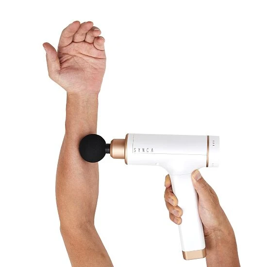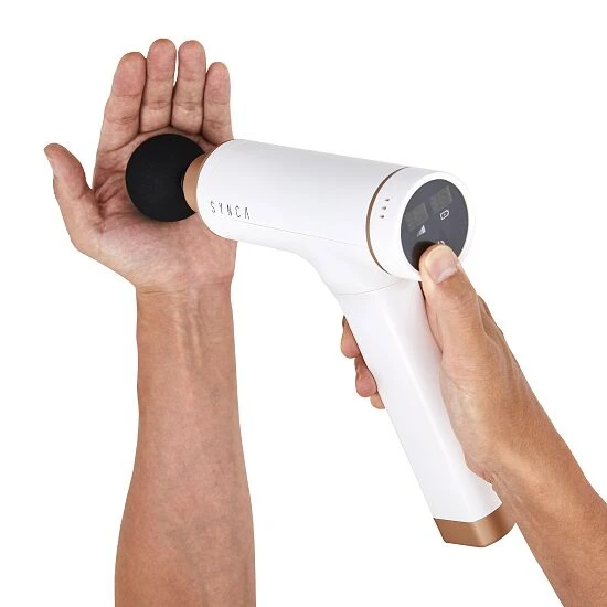 Das Synca Vibrationsmassagegerät „Kitta“ kann Verspannungen oder Verklebungen des Bindegewebes am ganzen Körper lösen. Durch die Massagepistole, welche 3.000 Schläge pro Minute ausführen kann, wird die Durchblutung gesteigert und Laktat reduziert. Ideal, um die Regeneration nach anspruchsvollen Trainingseinheiten zu beschleunigen. Hinzu kommt, dass die Massagepistole eine Soft-Touch