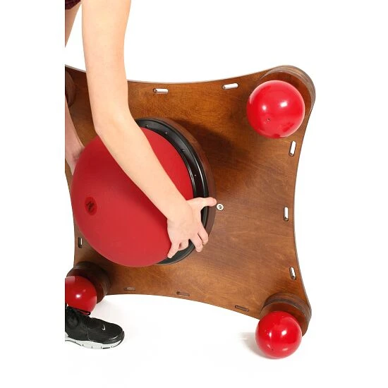 Das Togu Balanza Vario bezeichnet eine ganz besondere Art der Dynamik. Aufgrund von Lagerung auf Luftbällen können Ausgleichsbewegungen und Stabilisationen gezielt trainiert werden. Durch eigenständige Befüllung der Luft ist das Togu Balanza Vario für alle Trainingslevel anwendbar. Dank des stabilen Mehrschichtholzes ist das Balanza Vario äußerst robust und bis zu 100 kg belastbar.