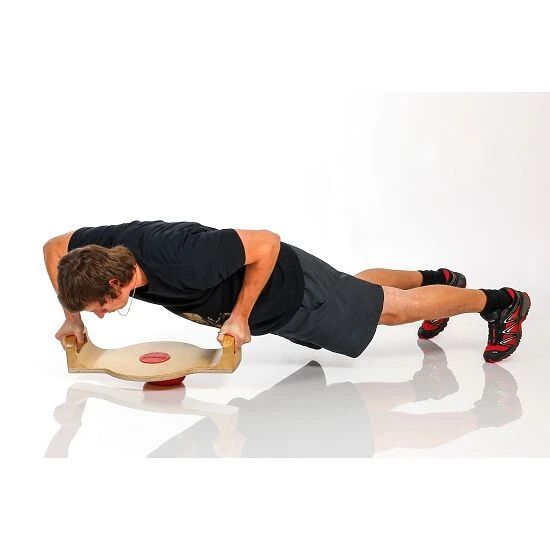 Das Togu Balanza: Eine sich speziell entwickelten Platte und ein schwimmend gelagerter, luftgefüllter Ball. Dadurch wird eine extrem dynamische Instabilität erzeugt, die stabilisierende Muskelgruppen aller Gelenke bis in die Tiefe zusätzlich anspricht. Das Balanza ist geeignet für Übungen im Stand mit und ohne Zusatzgeräte. Durch die seitlich angebrachten Eingriffe lassen sich auch Ganzkörper-Stabilisationsübungen im Stütz hervorragend umsetzen.