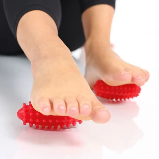 Die Togu Bantoo sind 2 Massagerollen aus RutonEin besonders strapazierfähiges und langlebiges Material. Es ist hoch elastisch, antistatisch, hat eine griffige Oberfläche und eine sehr gute Prellfähigkeit. mit Noppen. Der rote Kunststoff ist besonders belastbar. Die Anwendung der kleinen Massagegeräte für die Füße ist denkbar einfach: Legen Sie die beiden Massageroller einfach auf den Boden und rollen Sie die Füße in entgegengesetzter Richtung darüber. Durch Ihr Eigengewicht können Sie leichten bis starken Druck auf die Fußunterseiten ausüben. Dabei können Sie die Togu Bantoo im Stehen oder Sitzen anwenden.
